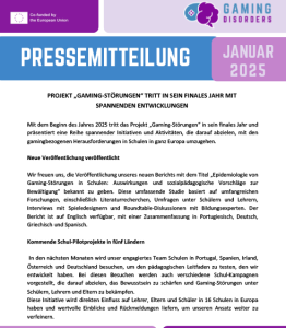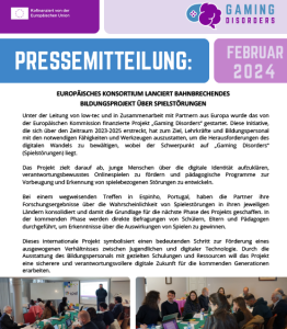 Das Projekt Gaming Disorders (Spielstörungen) zielt darauf ab, Lehrkräfte und Bildungspersonal mit den Kompetenzen und Werkzeugen auszustatten, die sie benötigen, um die Herausforderungen zu bewältigen, die sich aus der digitalen Transformation ergeben, wobei der Schwerpunkt auf Gaming Disorders liegt.